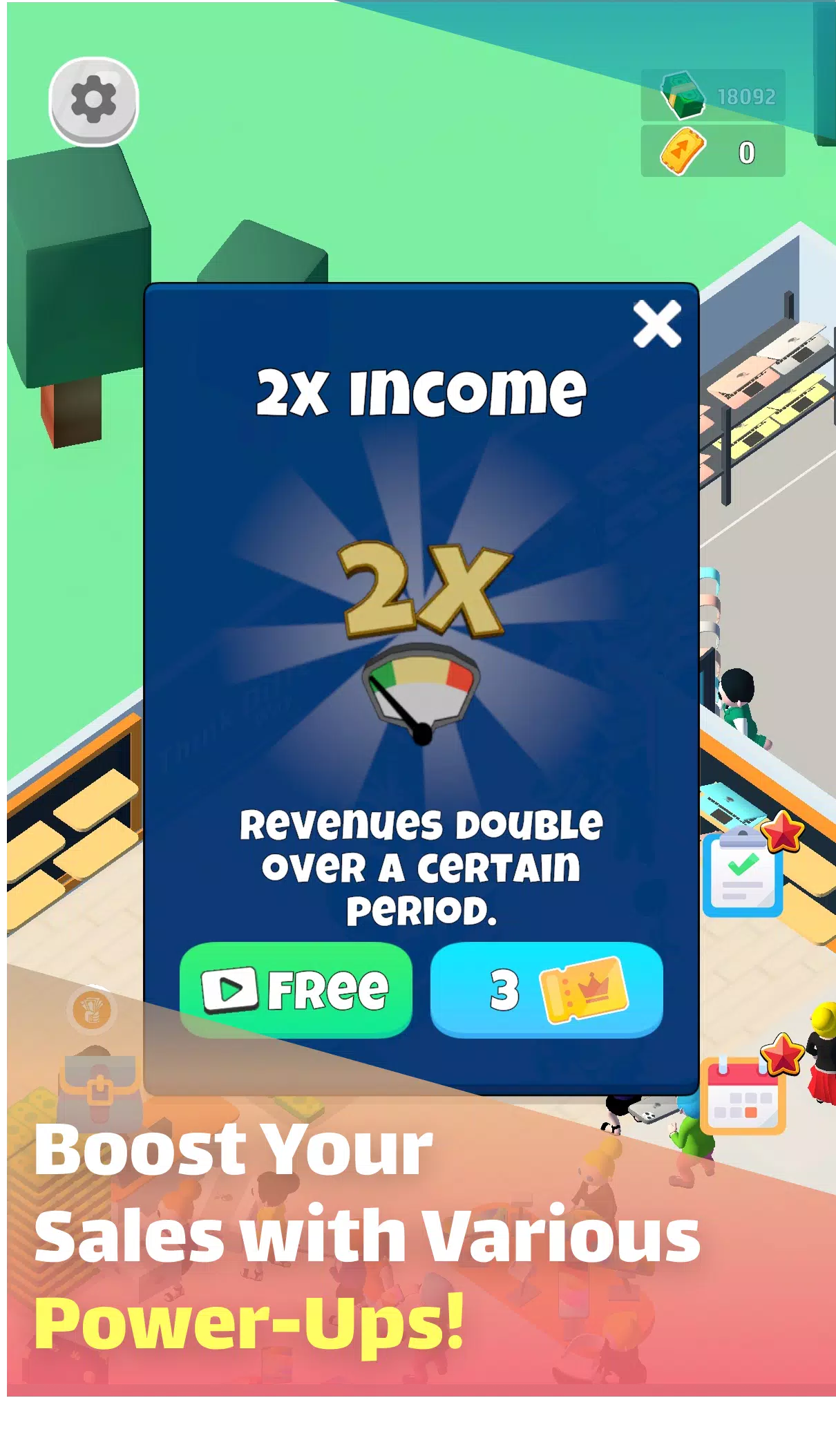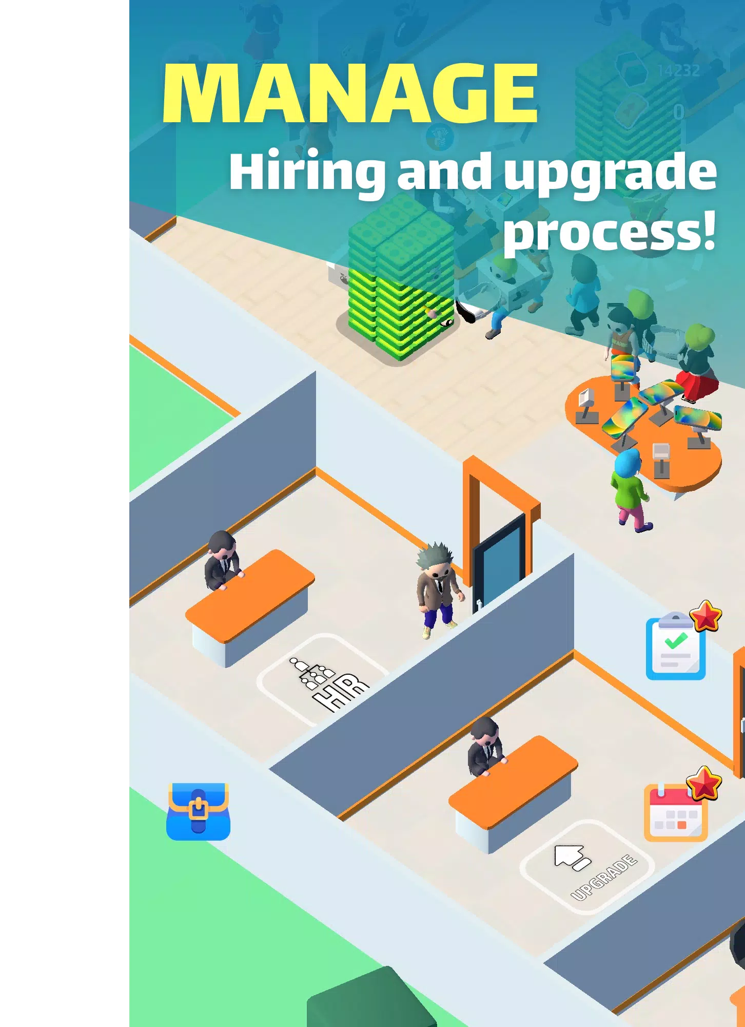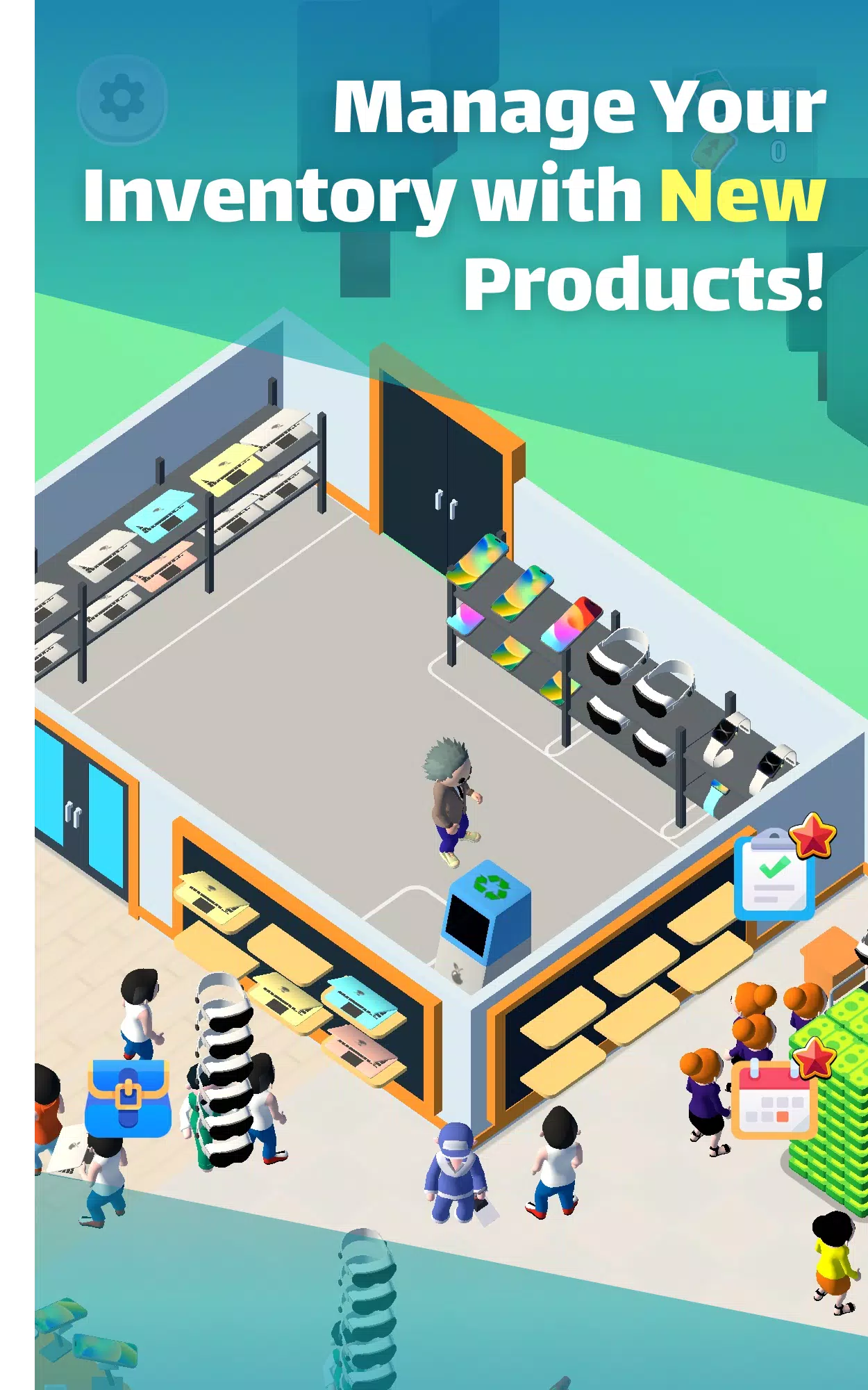 Начните с малого и расширяйтесь до огромных технологических торговых центров, открывая новые полки, отделы и товары. Нанимайте кассиров и продавцов для ускорения обслуживания, обучайте сотрудников работать быстрее и обслуживать больше покупателей. Продавайте телефоны, планшеты, компьютеры, очки виртуальной реальности, консоли, аксессуары — каждое улучшение открывает новую линейку продуктов. Зарабатывайте деньги автоматически даже офлайн, реинвестируйте прибыль в расширение. Idle-механика делает игру расслабляющей, но прибыльной.