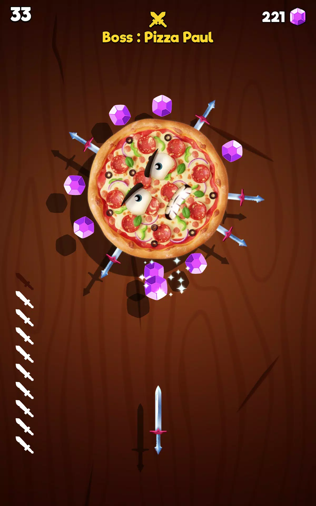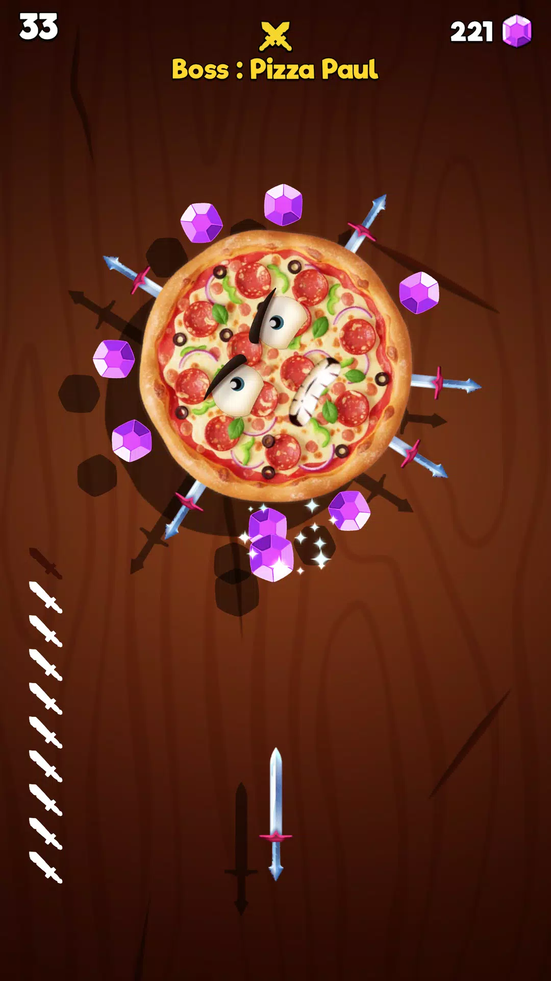 Sword Slash — это стремительный аркадный экшен, в котором чувство ритма и снайперская точность решают всё! Метайте острые мечи, поражайте движущиеся мишени и сокрушайте эксцентричных боссов-фруктов, собирая ценные камни на пути к новым рекордам. Проверьте, сколько целей вы сможете выбить, не допустив ни единой осечки. Окунитесь в реальность, где обычные продукты превращаются в опасных противников: от яростных цитрусов до гигантских арбузов и безумных предводителей пиццерий!
