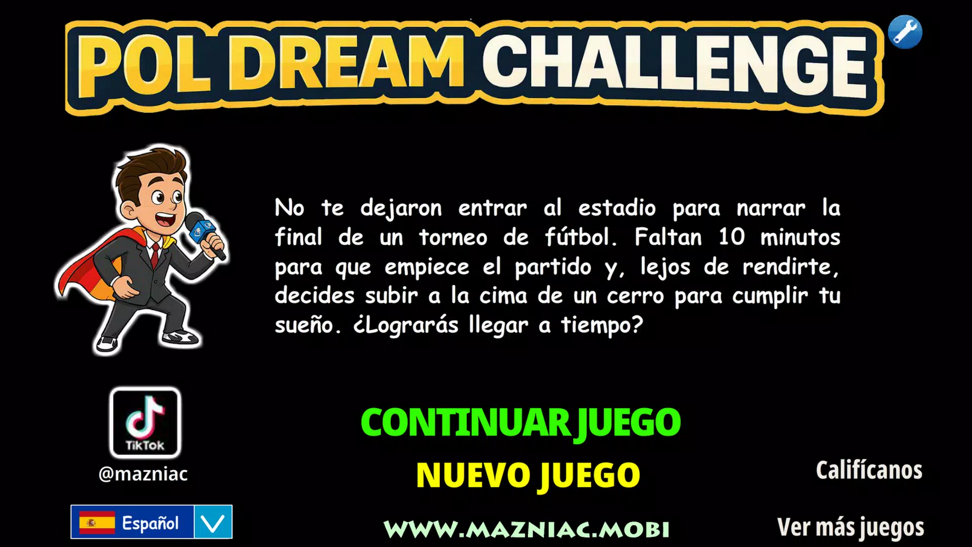 POL DREAM CHALLENGE — это платформер и игра на ловкость, проверяющая решимость и реакцию. Вы играете за Пола, 15-летнего подростка, мечтающего стать футбольным комментатором. Вас не пустили на стадион комментировать финал большого турнира, а до начала матча осталось всего 10 минут. Вместо того чтобы сдаться, вы решаете подняться на вершину холма для осуществления мечты. По пути предстоит уклоняться от катящихся камней и избегать стервятников, пытающихся украсть вещи. Каждая секунда на счёту, одна ошибка может стоить всего.