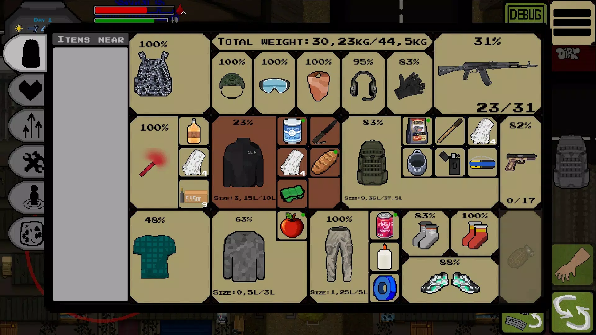 Ограниченный инвентарь и вес предметов