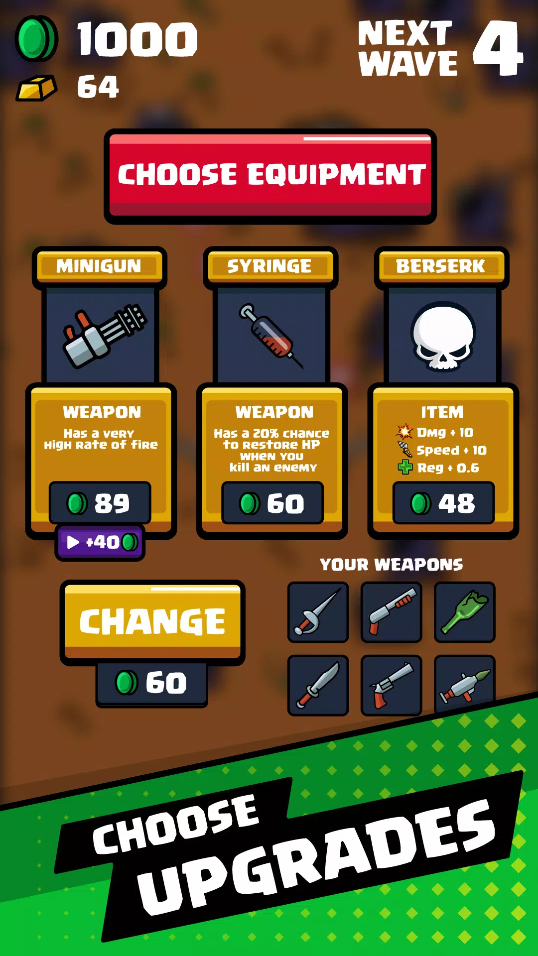 Глубокий прогресс и сборка (build): Между волнами врагов качайте героя: увеличивайте здоровье, улучшайте регенерацию, усиливайте урон оружия и выбирайте перки. Собирайте материалы и валюту, чтобы покупать и улучшать новые виды вооружения в арсенале.