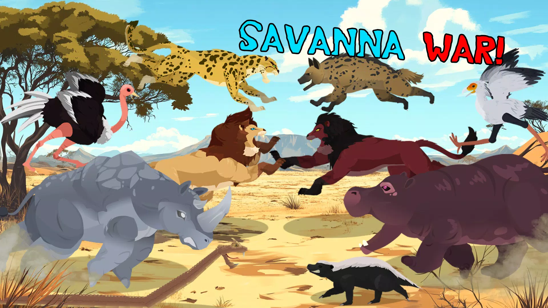 - Более 70 играбельных зверей — львы, слоны, носороги, бегемоты, буйволы, гиены, леопарды, гепарды, африканские дикие собаки. Каждое животное обладает уникальным стилем боя и набором атак.