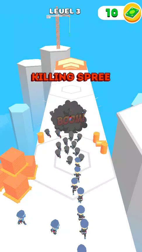 Heist Escape сочетает простоту управления с разнообразием игровых ситуаций. В один момент вы уворачиваетесь от препятствий, в другой — взрываете десяток охранников бомбой и несётесь вперёд под защитой щита. Случайность появления предметов делает каждый забег уникальным.
