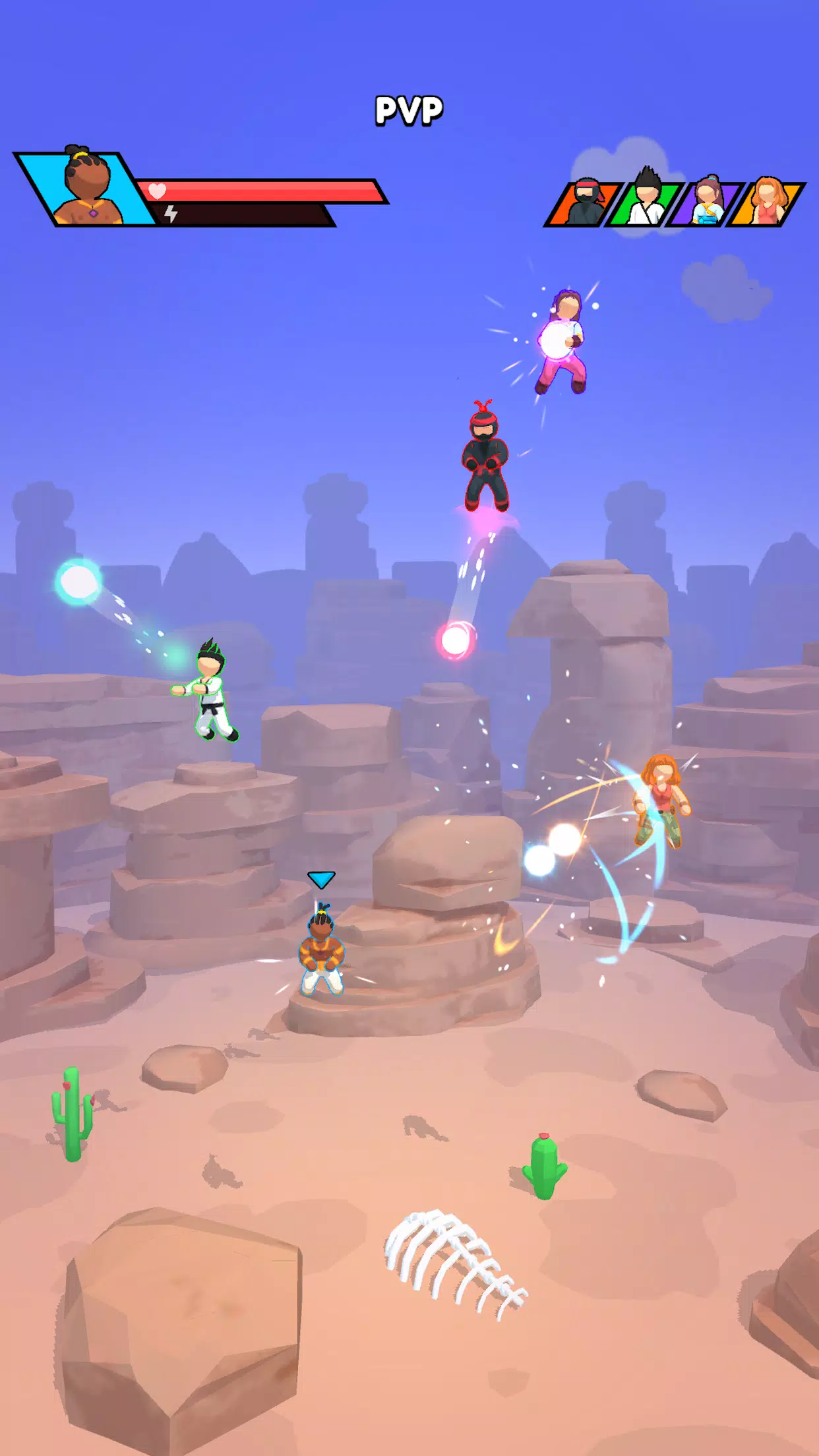 Проходите уровни и открывайте новые арены: от городов, наполненных энергией, до спокойных островов. Бонусные уровни бросают вызов даже опытным игрокам. Кастомизируйте внешний вид персонажа с помощью разблокируемых скинов — создайте воина, отражающего ваш стиль.
