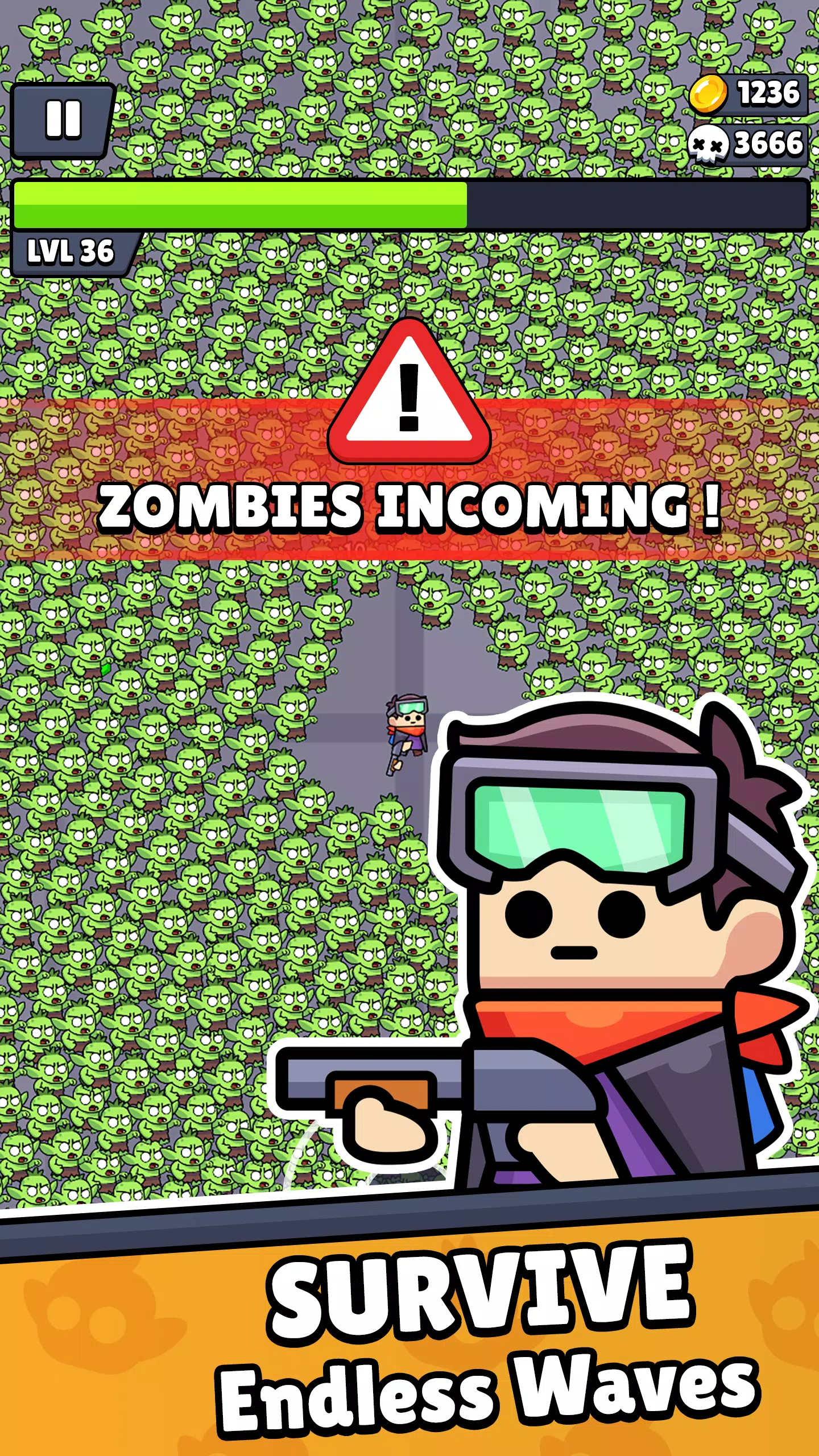 - Волновое выживание — монстры атакуют непрерывно, и с каждой волной их становится больше. Ваша задача — продержаться, набирая силу быстрее, чем растёт угроза.
