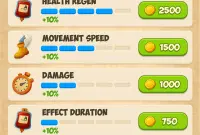 - Глобальный прогресс: перманентное усиление характеристик за золото.