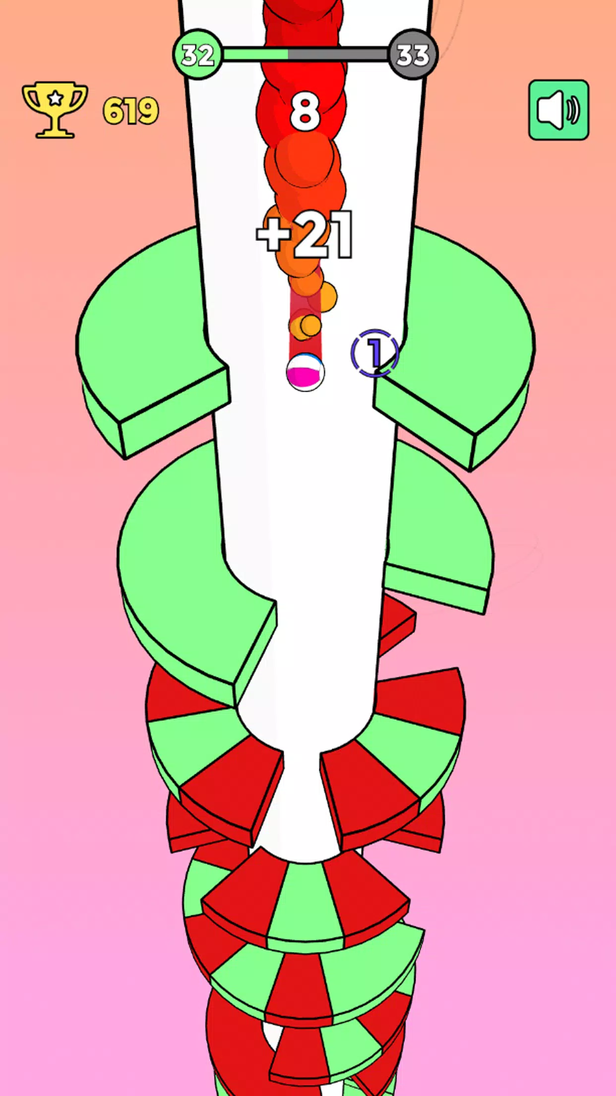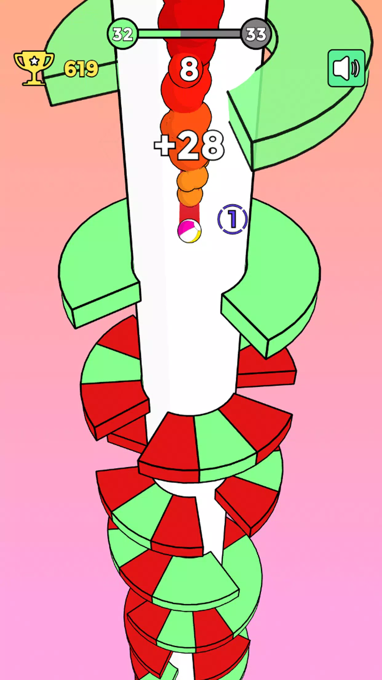 - Динамичный геймплей: классическая механика в духе Helix Jump, доведенная до совершенства.