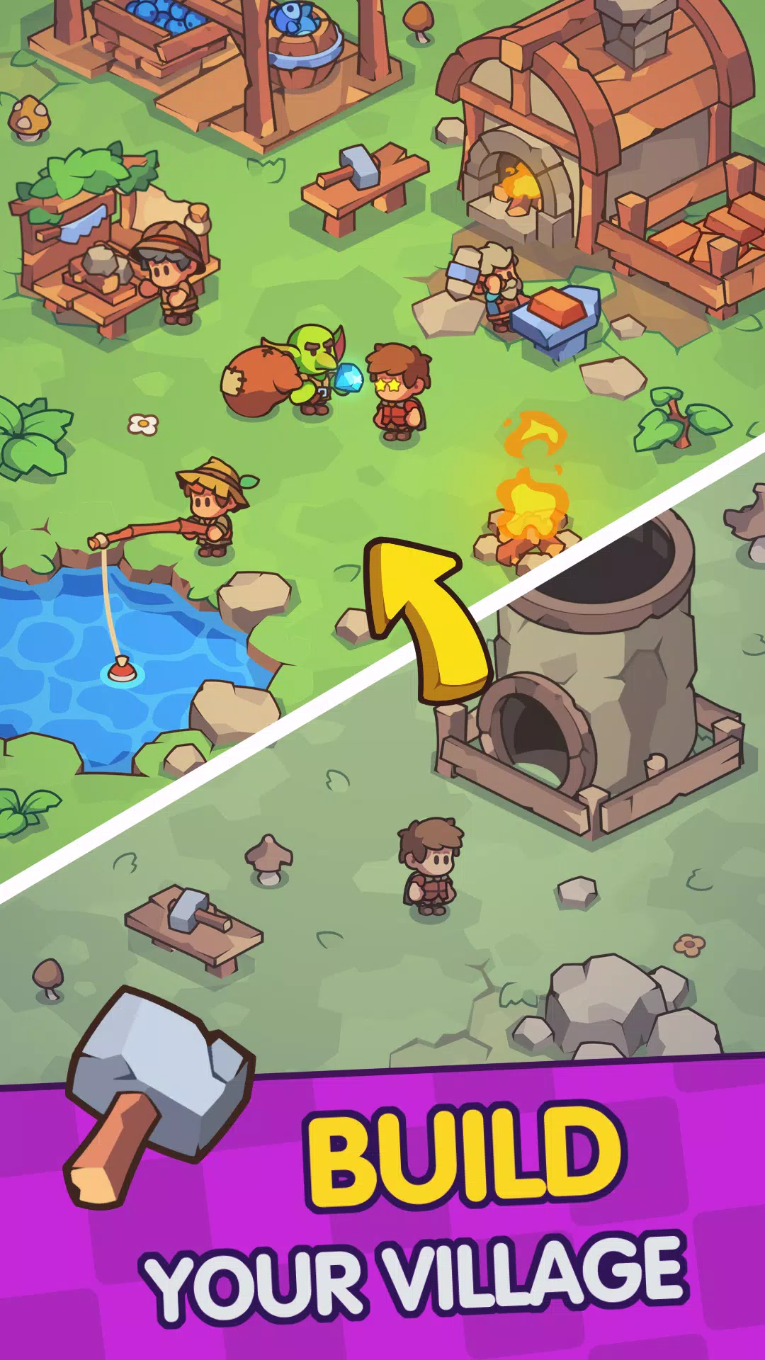 - Собирай всех уникальных героев, прокачивай их уровень и наблюдай как эффективность деревни растёт на глазах.