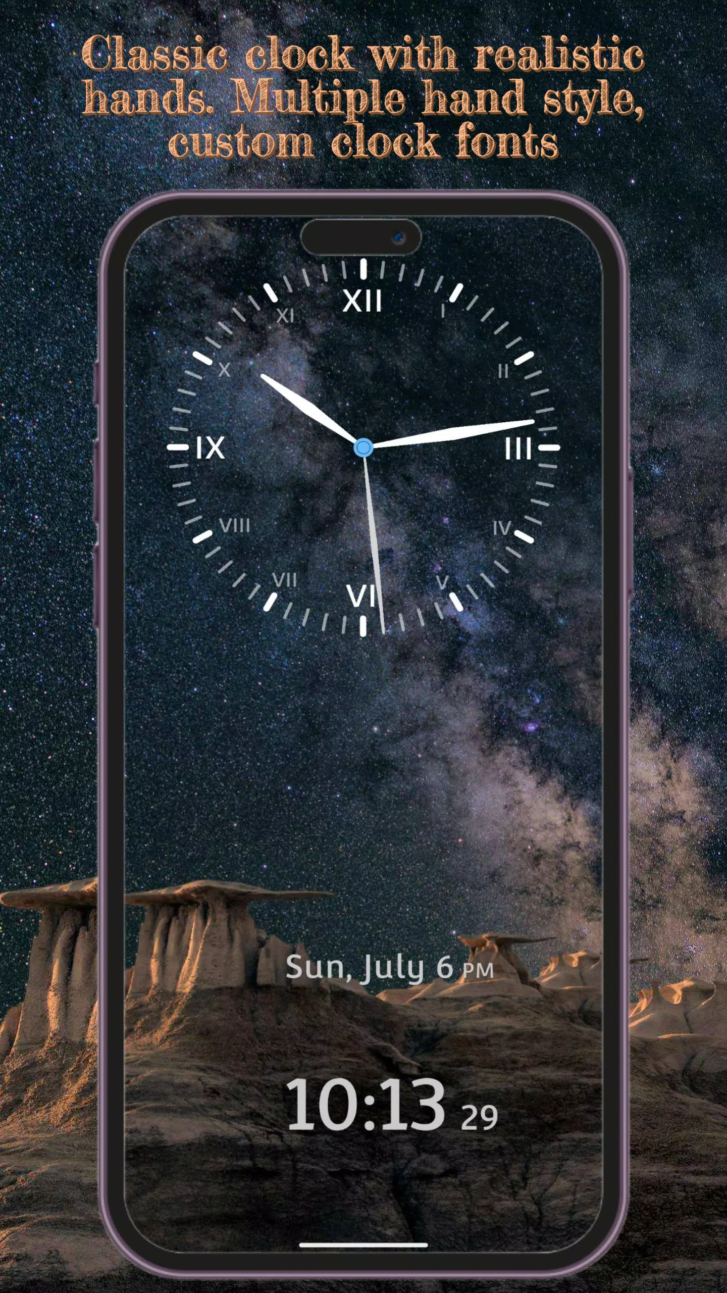 Приложение Классические часы привносит изысканный традиционный стиль в ваш мобильный девайс. Плавное движение тонкой стрелки, отсчитывающей мгновения, имитирует работу настоящего аналогового механизма, создавая эстетическое наслаждение при каждом взгляде на экран. Этот инструмент идеально подходит для размещения на рабочем столе или прикроватной тумбе, подчеркивая ваш утонченный вкус и внимание к деталям.