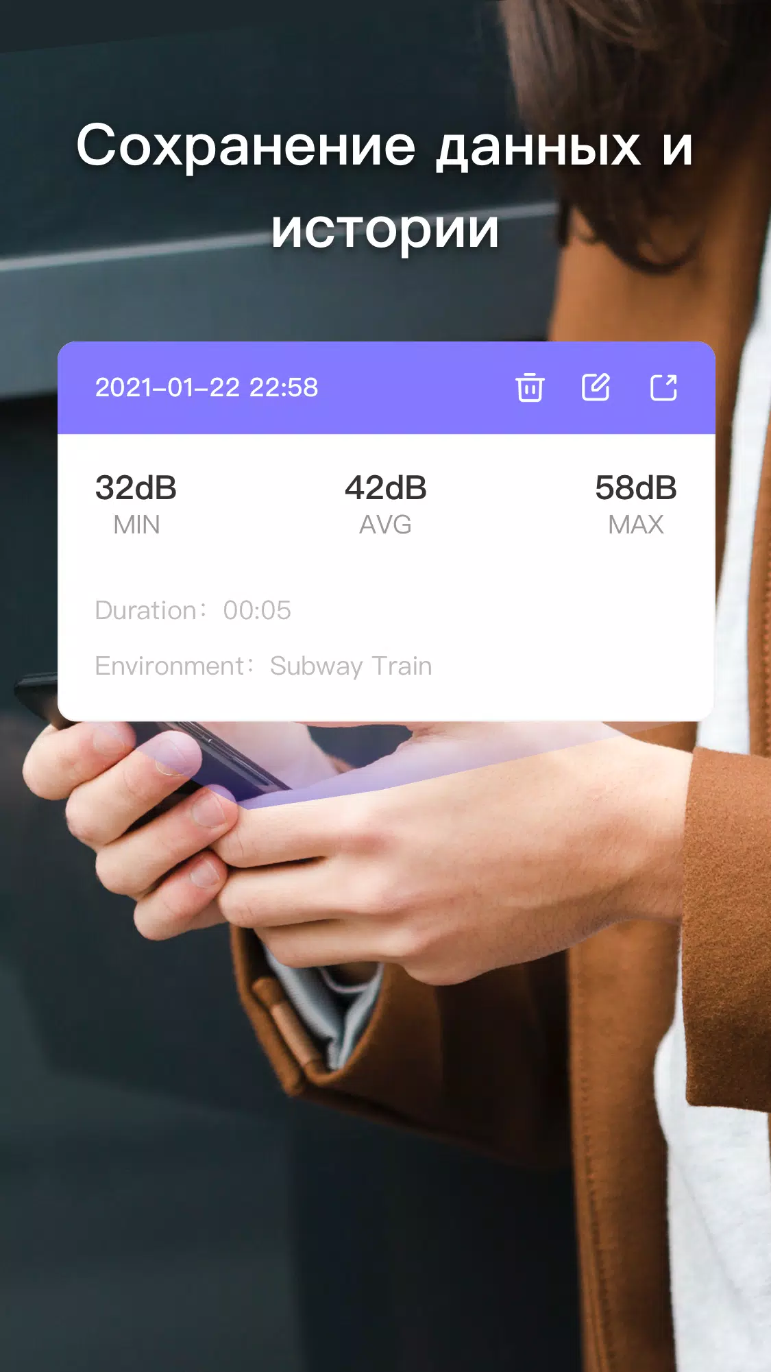 - Архивация и история: автоматическое сохранение результатов измерений с возможностью просмотра истории для анализа изменений звукового фона.