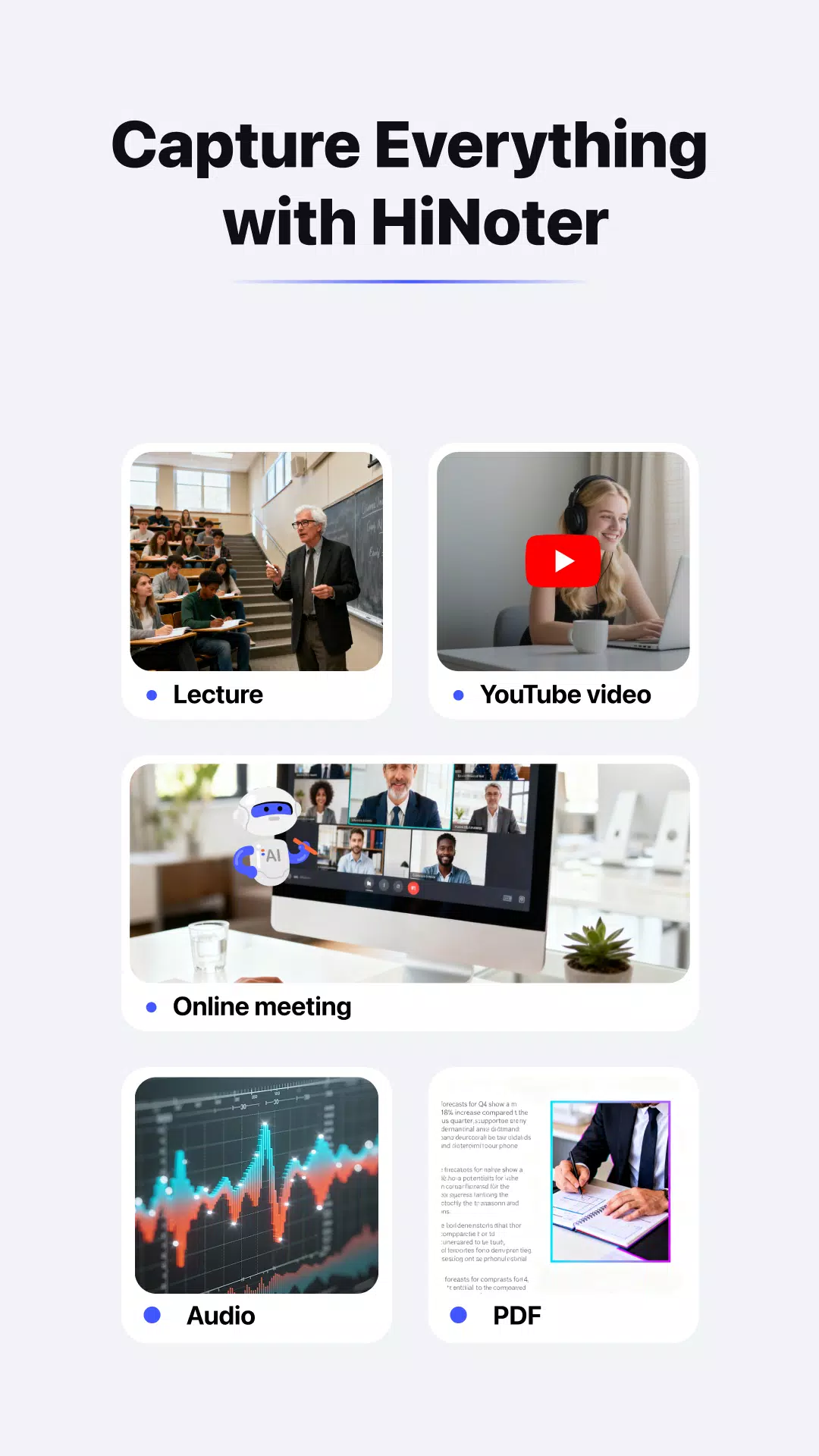 HiNoter — это персональный ассистент на базе искусственного интеллекта, который запечатлевает каждую важную деталь ваших встреч, лекций, интервью и мозговых штурмов. Он берёт на себя рутину конспектирования, позволяя вам полностью сосредоточиться на обсуждении и генерации идей.