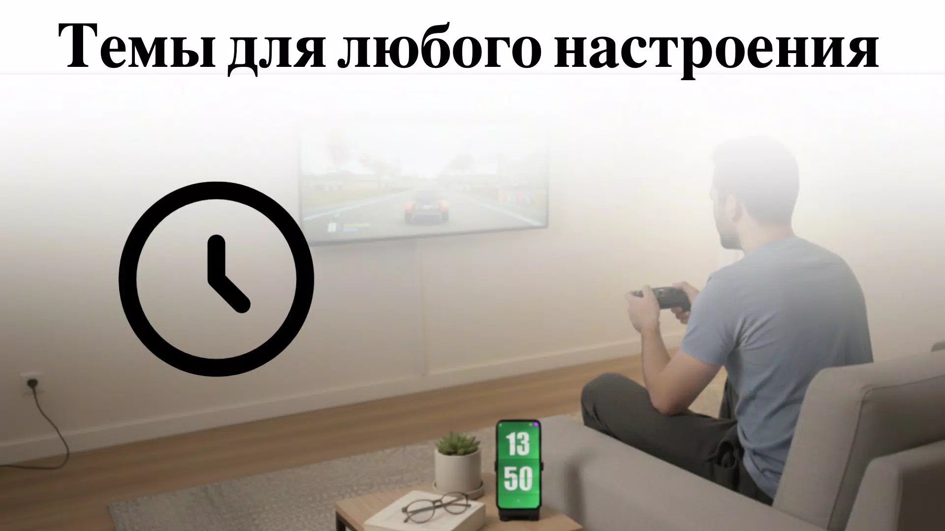 Универсальность применения: Приложение отлично подходит для создания минималистичной заставки, использования в качестве прикроватных часов или стильного настольного дисплея в офисе или гостиной.