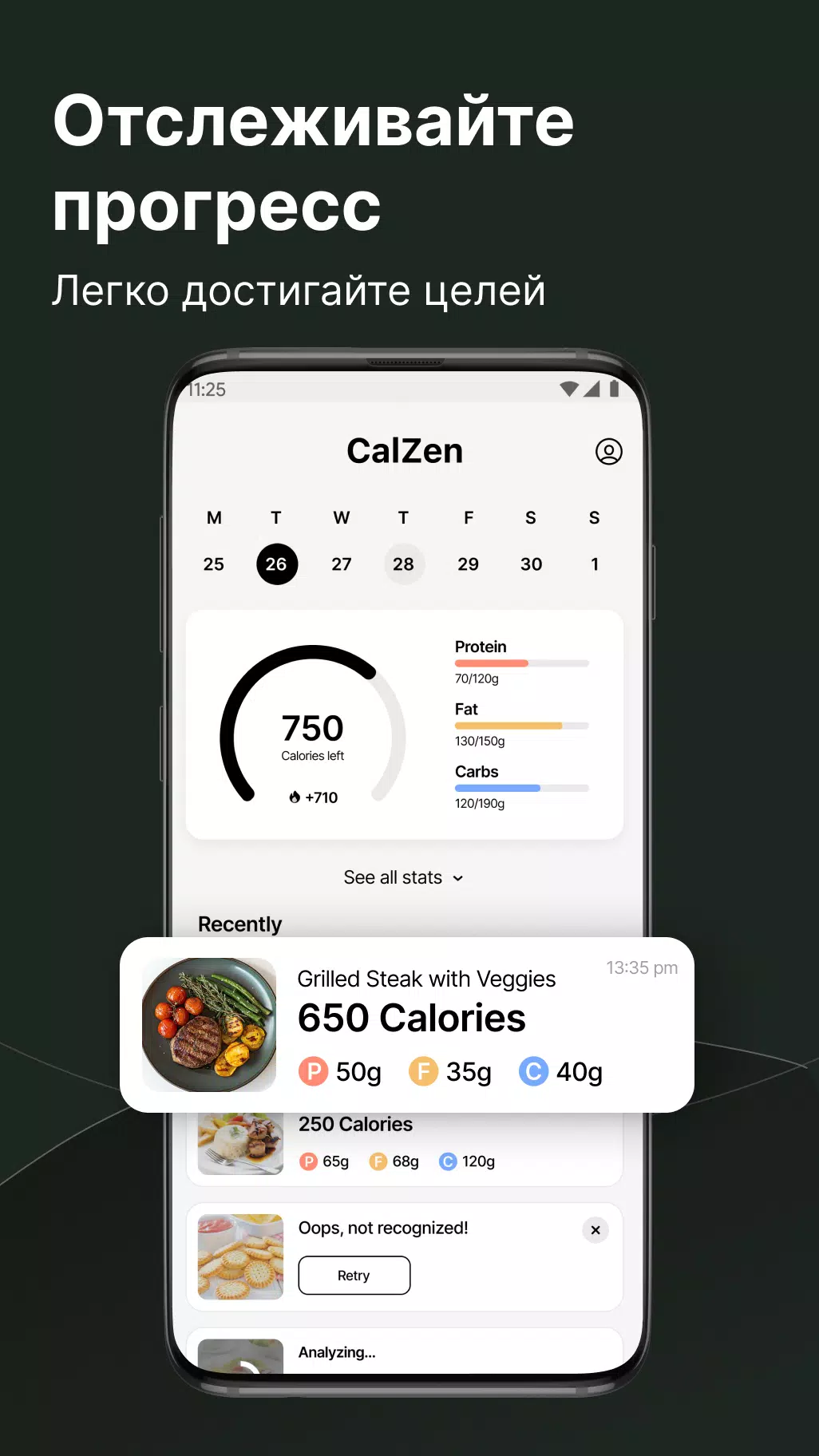 CalZen AI не ограничивается простым подсчетом калорий. Система оценивает сбалансированность вашего рациона, дает рекомендации по улучшению питания и помогает формировать правильные пищевые привычки. Вы можете редактировать распознанные ингредиенты, корректируя состав и объем порций для еще более точного учета.
